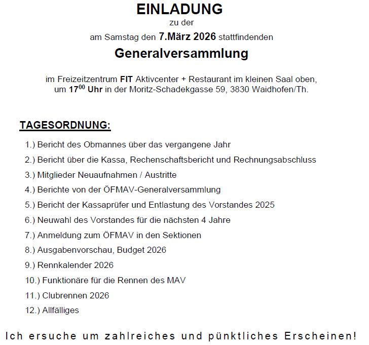Anmeldung zur ÖFMAV Lizenz! (e-mail: mav-waidhofen@ktv-wt.at)